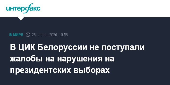 Москва. 28 января. INTERFAX.RU - Центризбирком Белоруссии не получал жалоб после президентских выборов, заявил "БелТА" председатель комиссии Игорь Карпенко.