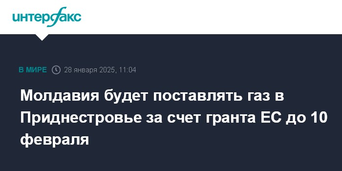Москва. 28 января. INTERFAX.RU - Поставки газа из Молдавии в Приднестровье, приобретенного за счет гранта Евросоюза на 30 млн евро, будут осуществляться с 28 января по 10 февраля, сообщил госагентству "Молдпрес" пресс-секретарь молдавского правительства Даниэль Водэ.