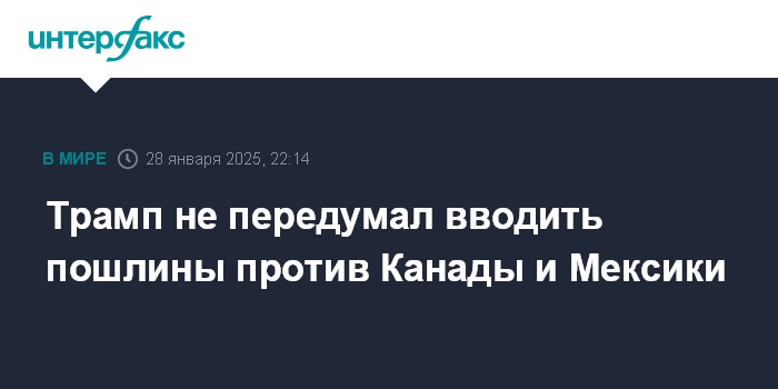 "Президент сказал, что по-прежнему придерживается планов введения пошлин в отношении Канады и Мексики", - сказала пресс-секретарь американского лидера Кэролайн Левитт.