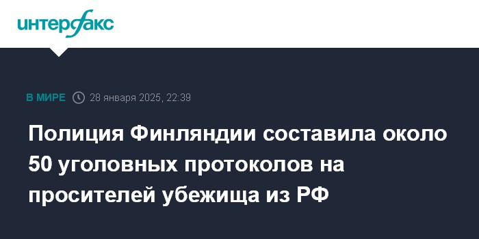 "По данным НБР, полиция составила около 50 уголовных протоколов, в которых проситель убежища, прибывший через восточную границу с осени 2023 года, находится в Финляндии по подозрению в совершении преступления", - сообщает портал телерадиовещания Yle.