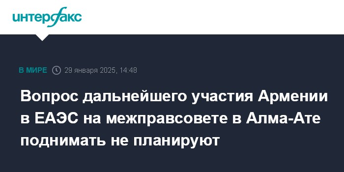 Вопрос дальнейшего участия Армении в ЕАЭС на межправсовете в Алма-Ате поднимать не планируют