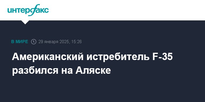 Москва. 29 января. INTERFAX.RU - Американский истребитель пятого поколения F-35А потерпел катастрофу при посадке на Аляске, сообщили ВВС США.