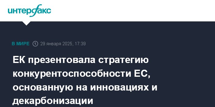 Москва. 29 января. INTERFAX.RU - Еврокомиссия (ЕК) представила в среду "Компас конкурентоспособности" - стратегию инновационной и экологически чистой экономики.