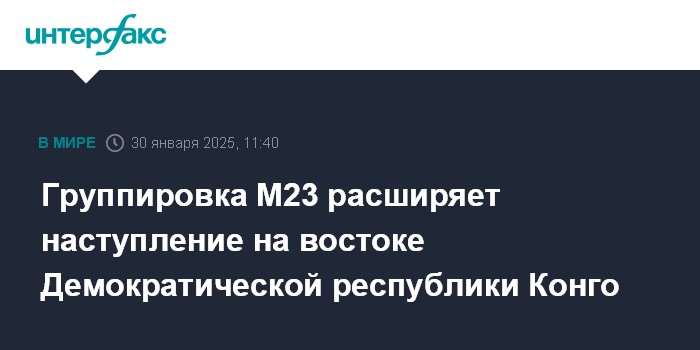 Москва. 30 января. INTERFAX.RU - Группировка "Движение 23 марта" (M23) продолжает наступление на востоке Демократической республики Конго (ДРК), захватывая новые территории, сообщает в четверг Associated Press (AP) со ссылкой на местных жителей.