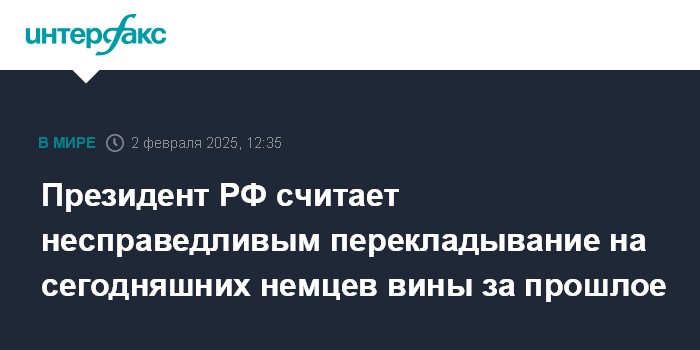 Президент РФ считает несправедливым перекладывание на сегодняшних немцев вины за прошлое