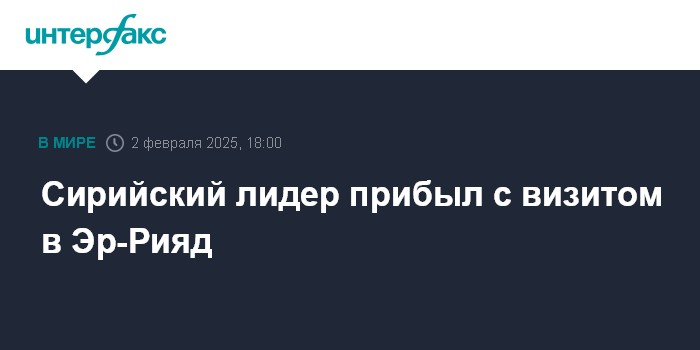 Москва. 2 февраля. INTERFAX.RU - Президент Сирии в переходный период Ахмад аш-Шараа в воскресенье совершил первый зарубежный визит, посетив Эр-Рияд, где провел встречу с наследным принцем Саудовской Аравии Мухаммедом Бен Салманом Аль Саудом.