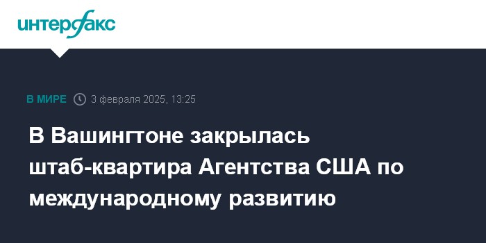 Москва. 3 февраля. INTERFAX.RU - Штаб-квартира Агентства США по международному развитию (USAID), расположенная в Вашингтоне, закрыта решением американской администрации, сообщил телеканал Fox News.