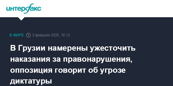 Москва. 3 февраля. INTERFAX.RU - Правящая партия "Грузинская мечта" уже в ближайшие дни начинает рассмотрение в парламенте законодательных инициатив, направленных на ужесточение наказания за административные и уголовные правонарушения, сообщил в понедельник на брифинге исполнительный секретарь партии Мамука Мдинарадзе.