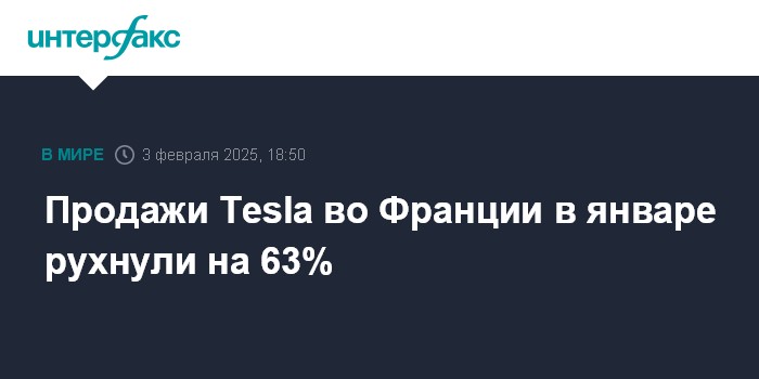 В 2024 году регистрация электромобилей Tesla в Европейском союзе снизилась на 13%, в том числе в Германии, которая является крупнейшим рынком в ЕС, – на 41%. Франция занимает второе место по объему рынка электромобилей.