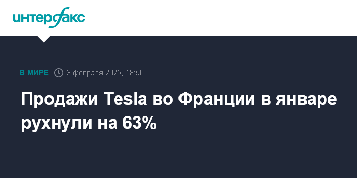 Продажи Tesla во Франции в январе рухнули на 63%