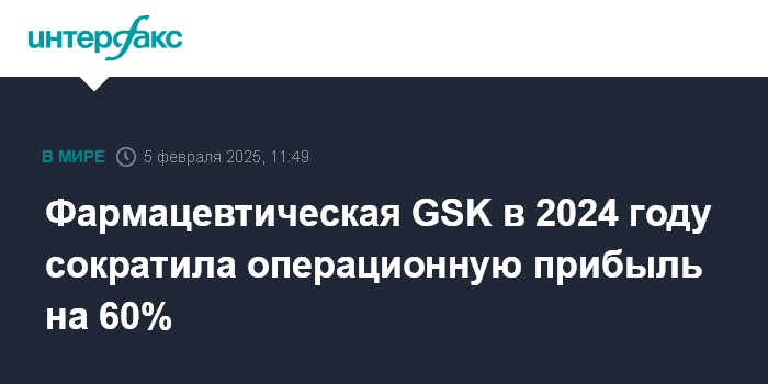 Фармацевтическая GSK в 2024 году сократила операционную прибыль на 60%