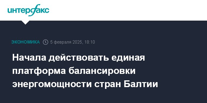 Москва. 5 февраля. INTERFAX.RU - Начала работу единая платформа балансировки мощности электроэнергии стран Балтии - 4 февраля состоялись первые аукционы, сообщил на следующий день литовский системный оператор Litgrid. Платформу создали операторы систем передачи электроэнергии трех стран - Litgrid, латвийская AST и эстонская Elering.