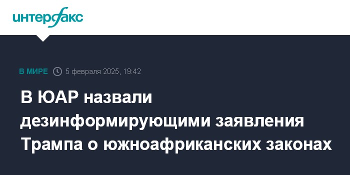 В ЮАР назвали дезинформирующими заявления Трампа о южноафриканских законах