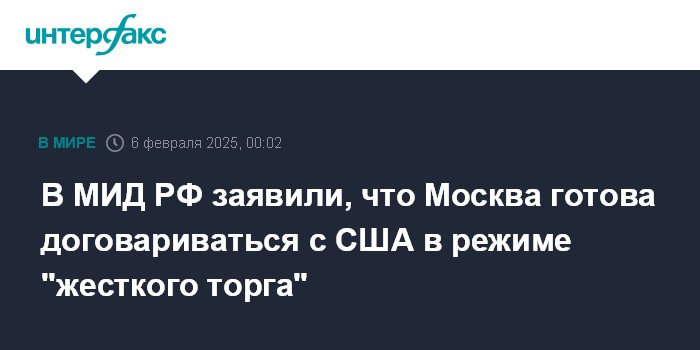 В МИД РФ заявили, что Москва готова договариваться с США в режиме "жесткого торга"