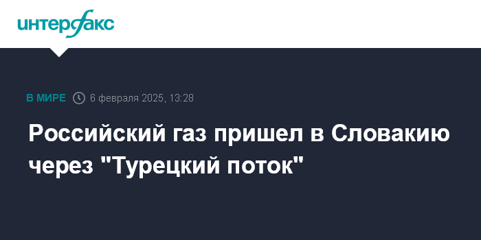 Москва. 6 февраля. INTERFAX.RU - Российский газ пришел в Словакию, которая оказалась отрезанной от прежних маршрутов газа после отказа Киева продлевать с "Газпромом" транзитный контракт, через газопроводную систему "Турецкий поток". Об этом сообщил словацкому изданию Dennik N глава словацкой газовой компании SPP Войтех Ференц.