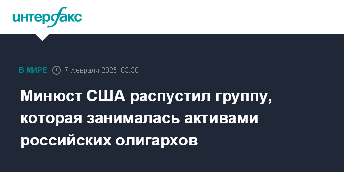 Минюст США распустил группу, которая занималась активами российских олигархов