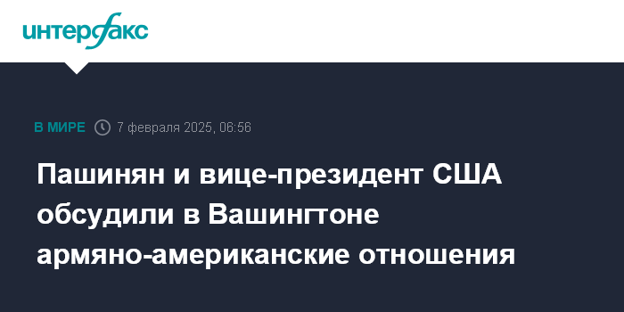Москва. 7 февраля. INTERFAX.RU - Премьер-министр Армении Никол Пашинян и вице-президент США Джеймс Вэнс обсудили армяно-американские отношения, сообщила пресс-служба армянского правительства.