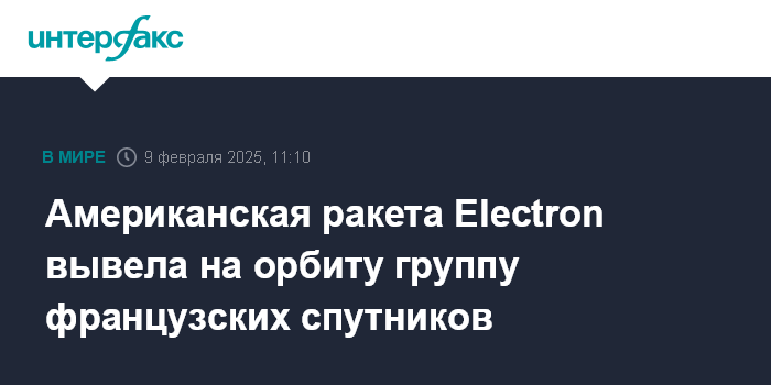 Москва. 9 февраля. INTERFAX.RU - Американская ракета Electron, стартовавшая из Новой Зеландии, успешно вывела на орбиту пять французских интернет-спутников компании Kineis, сообщила в воскресенье разработчик носителя Rocket Lab.