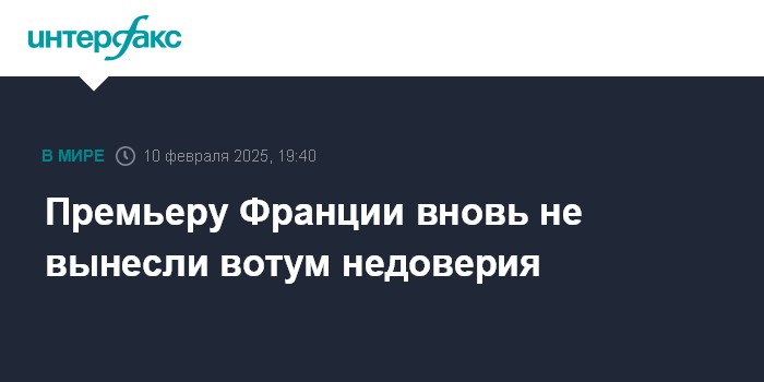 Москва. 10 февраля. INTERFAX.RU - Французские депутаты в понедельник не вынесли вотум недоверия премьер-министру Франции Франсуа Байру, сообщает телеканал BFM TV.