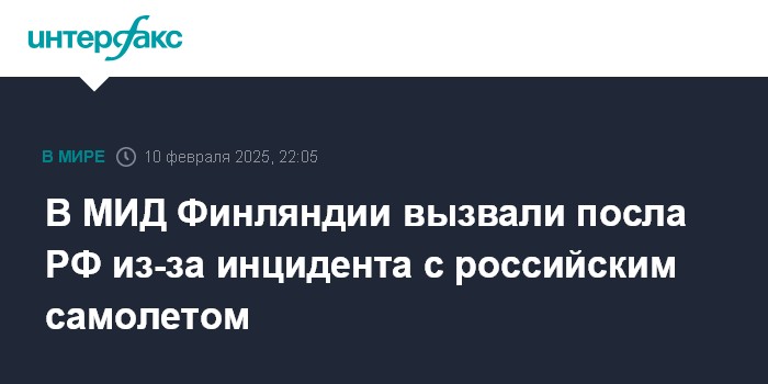 В МИД Финляндии вызвали посла РФ из-за инцидента с российским самолетом