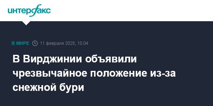 В Вирджинии объявили чрезвычайное положение из-за снежной бури