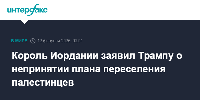 Король Иордании заявил Трампу о непринятии плана переселения палестинцев
