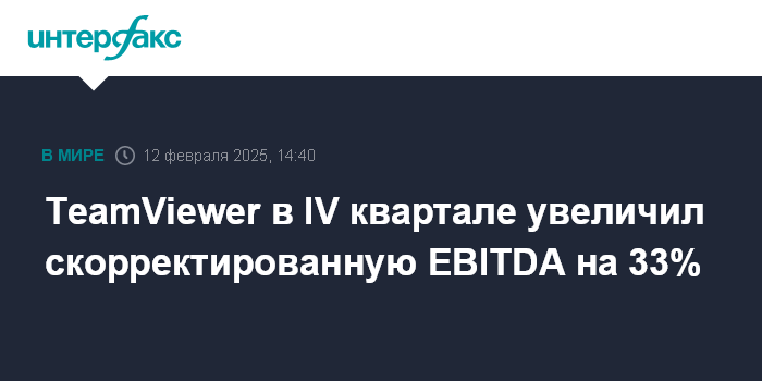 Москва. 12 февраля. INTERFAX.RU - Германский разработчик программного обеспечения TeamViewer в четвертом квартале 2024 года увеличил скорректированную прибыль до вычета налогов, процентов, износа и амортизации (EBITDA) на 33%.