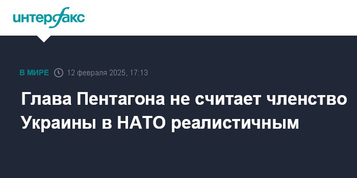 Москва. 12 февраля. INTERFAX.RU - США не считают, что по итогам переговоров по украинскому урегулированию Киев сможет вступить в НАТО, заявил в среду глава Пентагона Пит Хегсет.