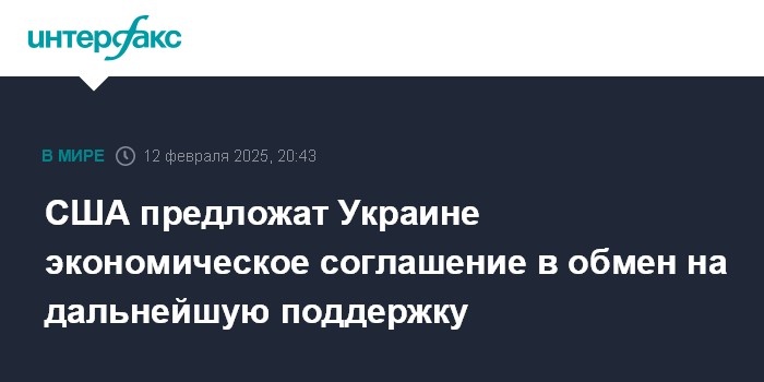 Москва. 12 февраля. INTERFAX.RU - США хотят заключить с Украиной соглашение об экономическом сотрудничестве в обмен на американскую поддержку в дальнейшем, заявил глава Минфина США Скотт Бессент на встрече с президентом Украины Владимиром Зеленским в Киеве. Трансляцию выступления министра вели западные СМИ.