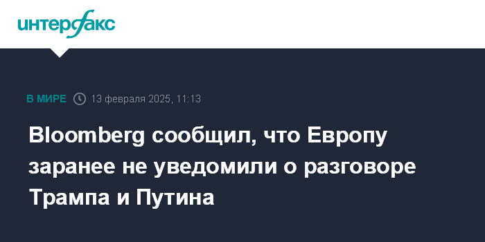 Bloomberg сообщил, что Европу заранее не уведомили о разговоре Трампа и Путина
