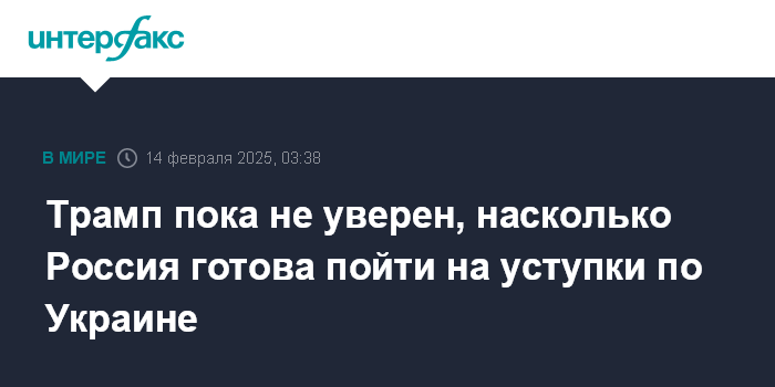 Москва. 14 февраля. INTERFAX.RU - Президент США Дональд Трамп заявил, что не может точно сказать, насколько Россия будет готова пойти на уступки по Украине.