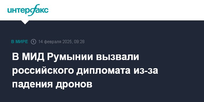 Москва. 14 февраля. INTERFAX.RU - Временного поверенного в делах Российской Федерации вызвали в МИД Румынии, чтобы выразить позицию Бухареста в отношении нарушений воздушного пространства республики, сообщает Румынское радио.