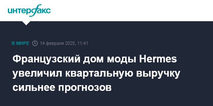 Москва. 14 февраля. INTERFAX.RU - Французский дом моды Hermes International увеличил выручку в четвертом квартале 2024 года на 18%, причем рост был отмечен во всех регионах и всех секторах бизнеса.