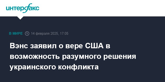 Москва. 14 февраля. INTERFAX.RU - Администрация президента США Дональда Трампа считает, что основанное на разумных договоренностях решение конфликта между Россией и Украиной возможно, заявил в пятницу вице-президент США Джей Ди Вэнс.