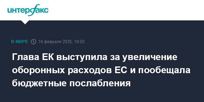 Москва. 14 февраля. INTERFAX.RU - Председатель Еврокомиссии (ЕК) Урсула фон дер Ляйен призвала прислушаться к некоторым замечаниям высокопоставленных лиц США о роли Европы в обеспечении собственной безопасности.