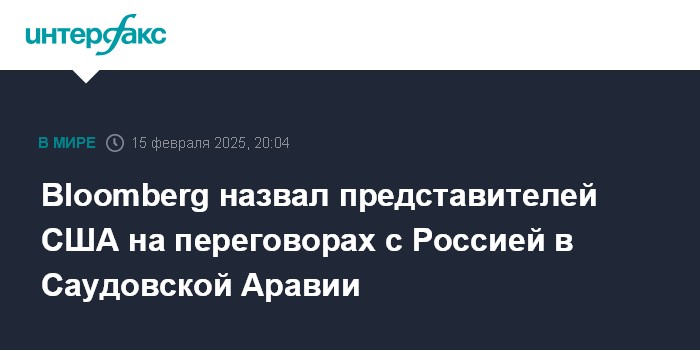Москва. 15 февраля. INTERFAX.RU - На переговорах по Украине между РФ и США, которые должны состояться в Саудовской Аравии на следующей неделе, американскую делегацию возглавят советник президента США по нацбезопасности Майк Уолц и спецпосланник президента США по Ближнему Востоку Стив Уиткофф, сообщило агентство Bloomberg в субботу со ссылкой на источники.
