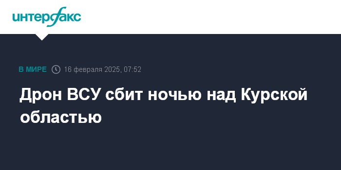 Москва. 16 февраля. INTERFAX.RU - Российские военные в ночь на воскресенье уничтожили один беспилотник в небе над Курской областью, сообщили в Минобороны РФ.
