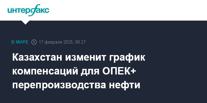 "Министр добавил, что Казахстан представит обновленный план компенсации, учитывающий как перепроизводство, так и невыполненные объемы компенсации в январе", - сообщило Минэнерго после переговоров Саткалиева с принцем Абдулазизом бен Салманом, председателем ОПЕК+ и министром энергетики Саудовской Аравии. В телефонной беседе также участвовал заместитель премьер-министра Российской Федерации и сопредседатель ОПЕК+ Александр Новак, а также генсекретарь ОПЕК Хайт Аль-Гаис.