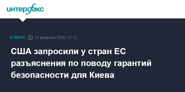 Москва. 17 февраля. INTERFAX.RU - Власти США запросили у европейских стран разъяснений по поводу того, на какие гарантии безопасности Украины они готовы пойти, сообщает в понедельник Bloomberg со ссылкой на оказавшиеся в распоряжении агентства документы.