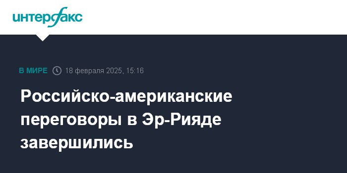 Москва. 18 февраля. INTERFAX.RU - Встреча делегаций РФ и США в Эр-Рияде завершилась, сообщил помощник президента России Юрий Ушаков в эфире Первого канала.