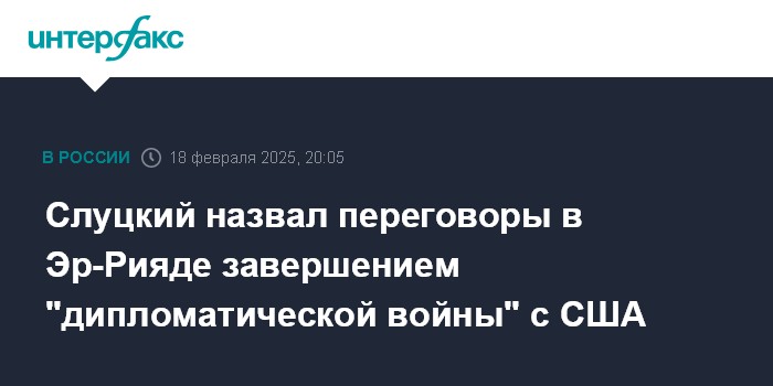 Москва. 18 февраля. INTERFAX.RU - Председатель комитета Госдумы по международным делам Леонид Слуцкий заявил, что по итогам переговоров делегаций России и США в Саудовской Аравии можно говорить, по сути, об окончании "дипломатической войны" между обеими странами.