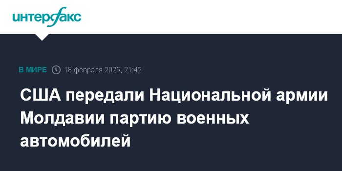 Москва. 18 февраля. INTERFAX.RU - США передали Национальной армии Молдавии 29 военных автомобилей Hummer, сообщила пресс-служба молдавского Минобороны.