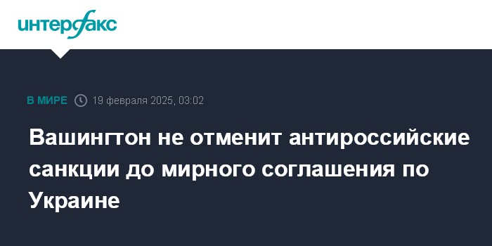 Москва. 19 февраля. INTERFAX.RU - США не планируют отменять санкции против России до достижения мирного соглашения по Украине, заверил европейских коллег американский госсекретарь Марко Рубио, сообщает Bloomberg, ссылаясь на источники.