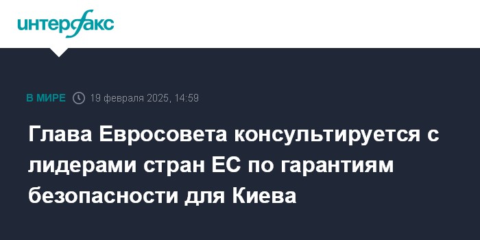 "Председатель Кошта начал сейчас систематический и структурированный процесс консультаций с лидерами (стран ЕС - ИФ), основанный на вопросах, сосредоточенных вокруг двух тем: поддержка Европейским союзом Украины и гарантии безопасности", - заявил чиновник в среду журналистам в Брюсселе.