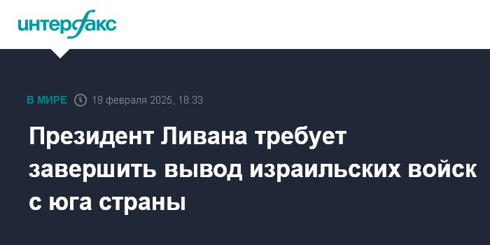 Москва. 19 февраля. INTERFAX.RU - Израильские военные должны окончательно покинуть территорию Ливана, уйдя из последних контролируемых ими пунктов, заявил президент Ливана Жозеф Аун.