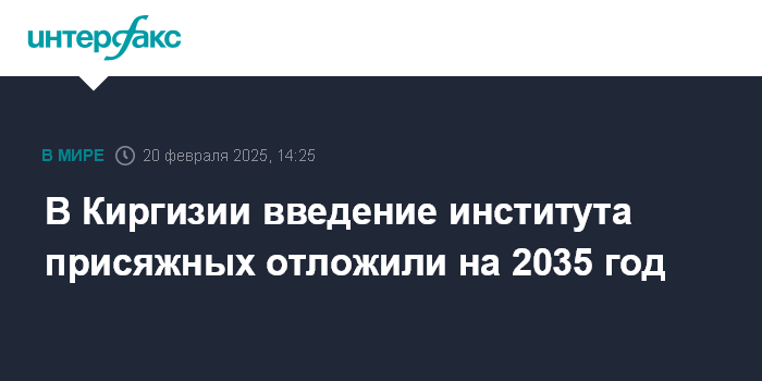 Москва. 20 февраля. INTERFAX.RU - Президент Киргизии Садыр Жапаров перенес введение института присяжных в стране на 1 января 2035 года, сообщила его пресс-служба.