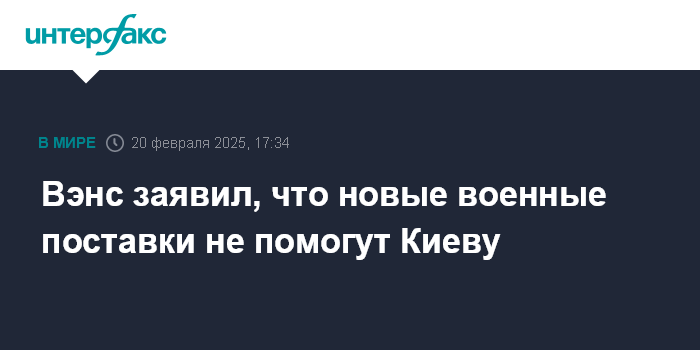 Москва. 20 февраля. INTERFAX.RU - Киев находится в том положении, когда очередные поставки оружия не изменят ситуацию, пришло время урегулировать украинский кризис, заявил в четверг вице-президент США Джей Ди Вэнс.
