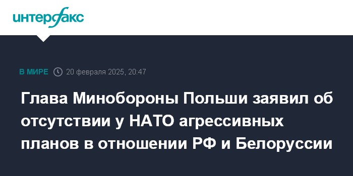 Глава Минобороны Польши заявил об отсутствии у НАТО агрессивных планов в отношении РФ и Белоруссии