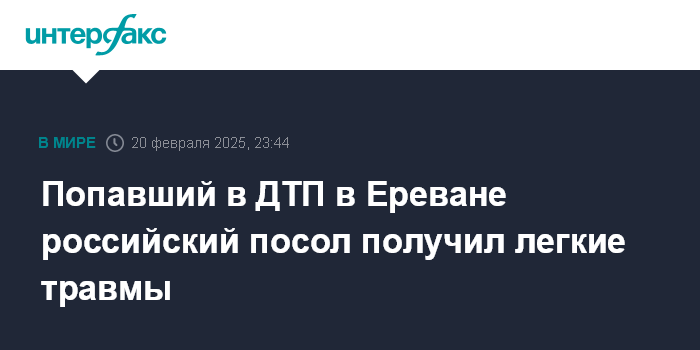 Попавший в ДТП в Ереване российский посол получил легкие травмы