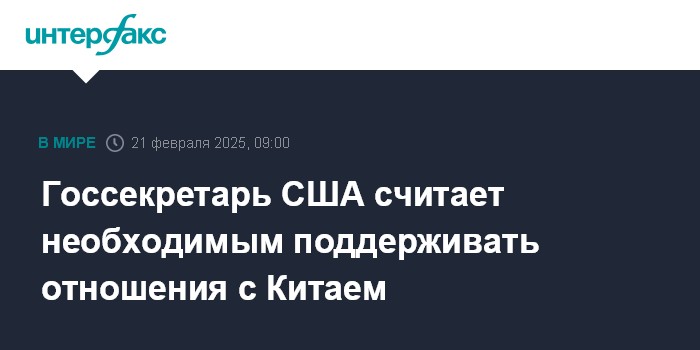 Москва. 21 февраля. INTERFAX.RU - Соединенные Штаты должны поддерживать отношения с Китаем как с быстро развивающейся экономически и в военной области страной, заявил госсекретарь США Марко Рубио журналистке Кэтрин Херридж.